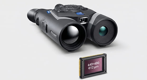 Multispektrálny binokulár kombinujúci termovízny senzor 640×480 / 12 μm a digitálny 4K CMOS senzor.Laserový diaľkomer, stabilizácia obrazu a kombinované režimy PiP poskytujú presné informácie o scénev deň, súmrak aj úplnú tmu.